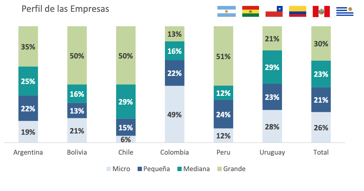 «Esto puede deberse al alto porcentaje de empresas Grandes que fueron encuestadas, las cuales tienen mayores posibilidades de desarrollar capacitaciones en gestión ambiental. Resulta interesante resaltar el caso de Colombia, donde la mitad de sus encuestadas fueron firmas Micro y, además, un 45% del total tienen los programas mencionados. Esto demuestra la tendencia de las empresas jóvenes a resaltar la importancia de la sustentabilidad», señala el estudio.