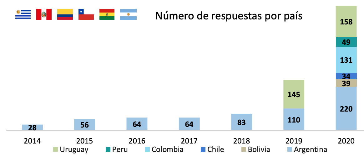 Este reporte duplicó la cantidad de respuestas de empresas. Se alcanzó una muestra de 220 organizaciones argentinas y a un total de 631 a nivel regional.
