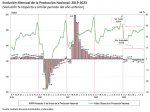 A través de su informe técnico Producción Nacional, el INEI también señaló que, en el periodo enero-septiembre 2023 la economía peruana se contrajo en 0,63%.